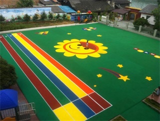 EPDM球场是单组份胶水与EPDM颗粒混合后,按要求厚度摊铺在基础面上得到的球场面层,具有弹性适中、耐磨、耐老化、色彩丰富、不易褪色等特点,特别适用于运动场、儿童乐园、幼儿园、体育器械区及篮球场、网球场、排球场等场所。